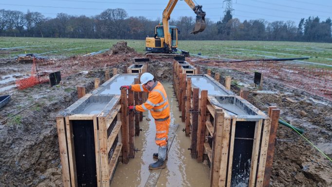 We install reinforced concrete ground beams that provide strong, stable foundations for structural walls and columns. Each beam is set out and poured to exact tolerances, ensuring durability and load-bearing performance.